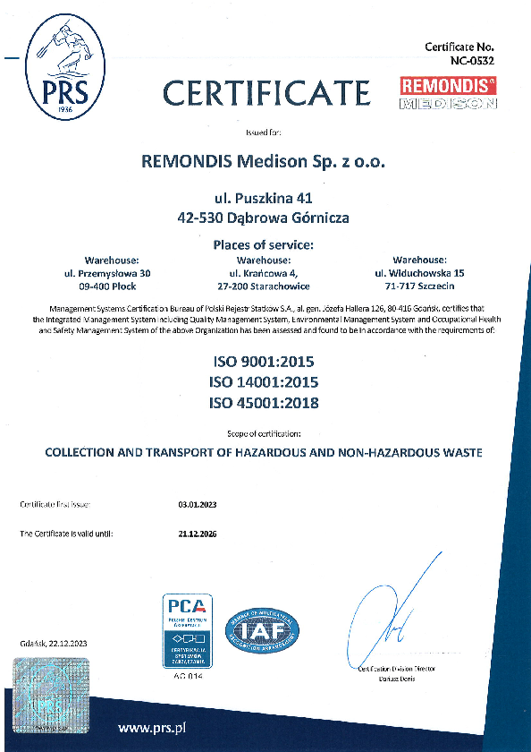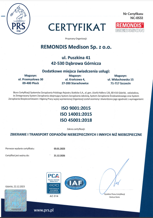Zarząd REMONDIS Medison Sp. z o.o.. 15.12.2022 r.